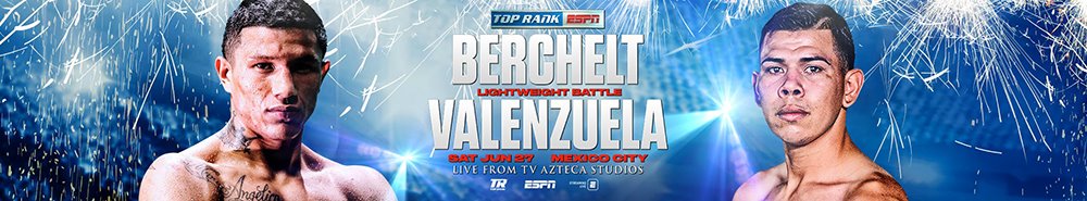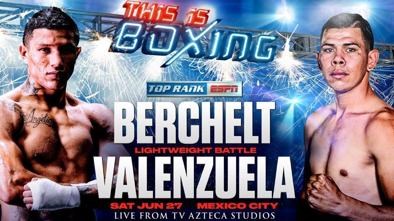 Description Week 3 of the Top Rank on ESPN summer series concludes from TV Azteca Studios in Mexico City on Saturday, June 27, when WBC super featherweight world champion Miguel “El Alacran” Berchelt will face Eleazar “Tronco” Valenzuela in a 10-round lightweight bout (ESPN & ESPN Deportes, 11 p.m. ET).