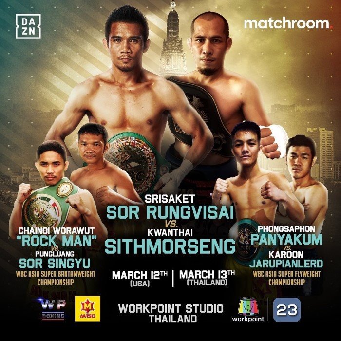 Description Srisaket Sor Rungvisai (49-5-1, 42 KOs), the former Two-time WBC world champion and Lineal world champion in Super Flyweight from Thailand, is set to get back into the ring on March 12, 2021 against a former WBA world champion and the current Thai Super Flyweight champion – Kwanthai Sithmorseng (50-7-1, 27 KOs). The fight will be the main event of the WP Boxing series, the leading boxing program in Southeast Asia.