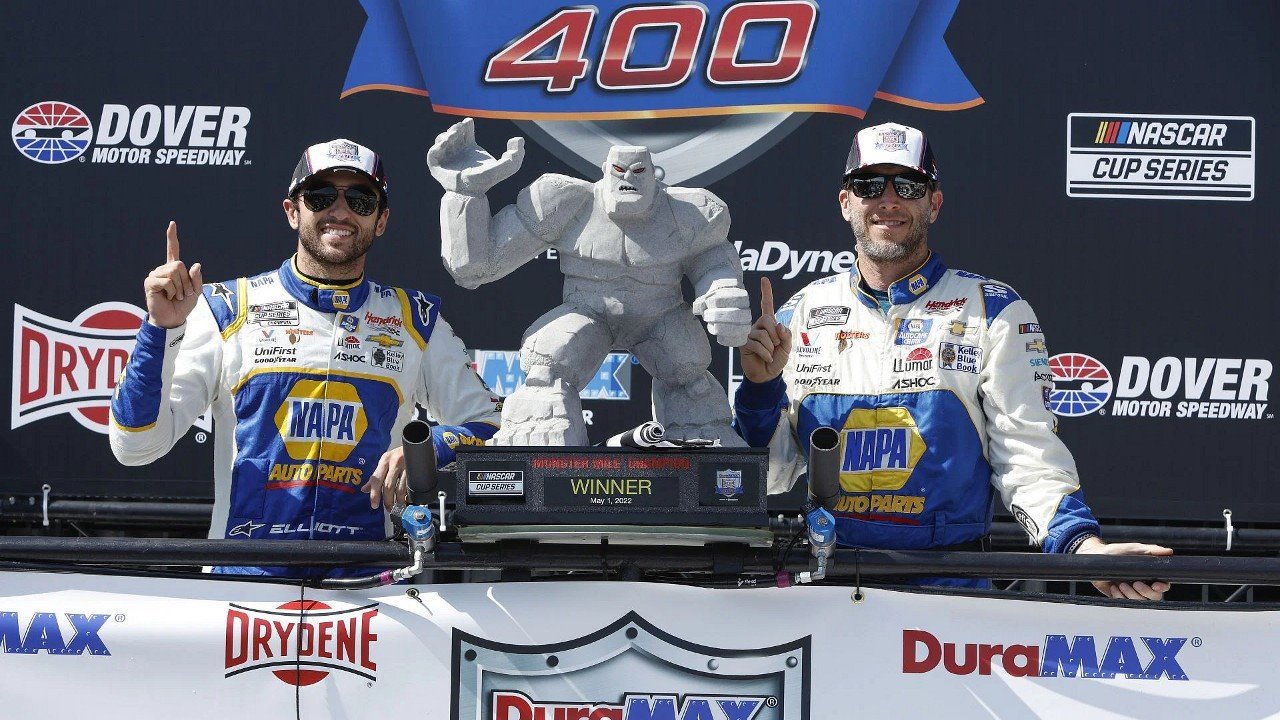 Result Description NASCAR Cup Series standings leader Chase Elliott earned his first victory of the season in Monday’s weather-delayed DuraMAX Drydene 400 at Dover Motor Speedway.