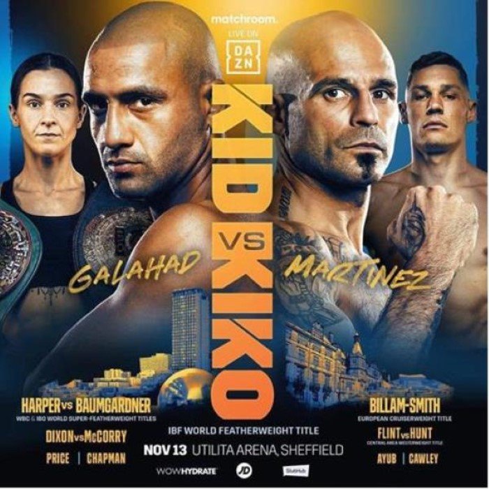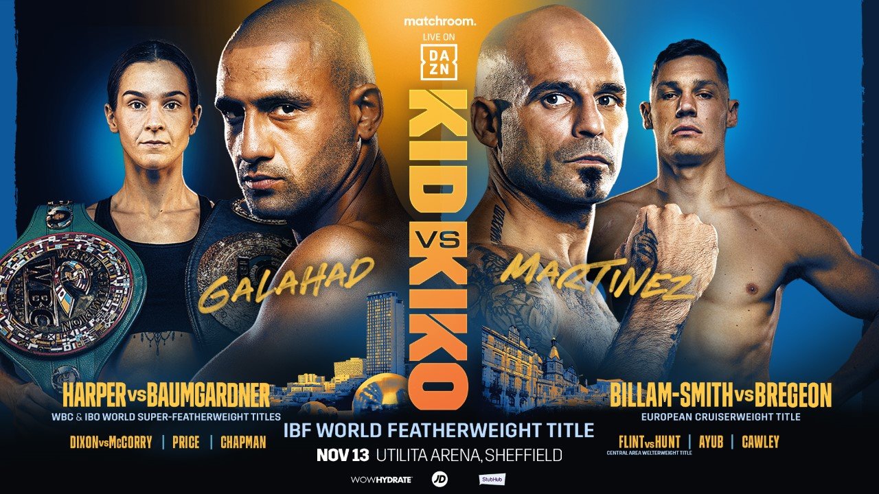 Description Kid Galahad will make his IBF Featherweight World Title defence against former World Champion Kiko Martinez alongside Super-Featherweight ruler Terri Harper who puts her belts on the line against America’s Alycia Baumgardner at Utilita Arena Sheffield next Saturday, 13 November 2021.