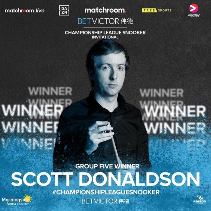 Scott Donaldson has won Group 5 of the BetVictor Championship League Snooker Invitational beating Jordan Brown in the group final at the Morningside Arena, Leicester