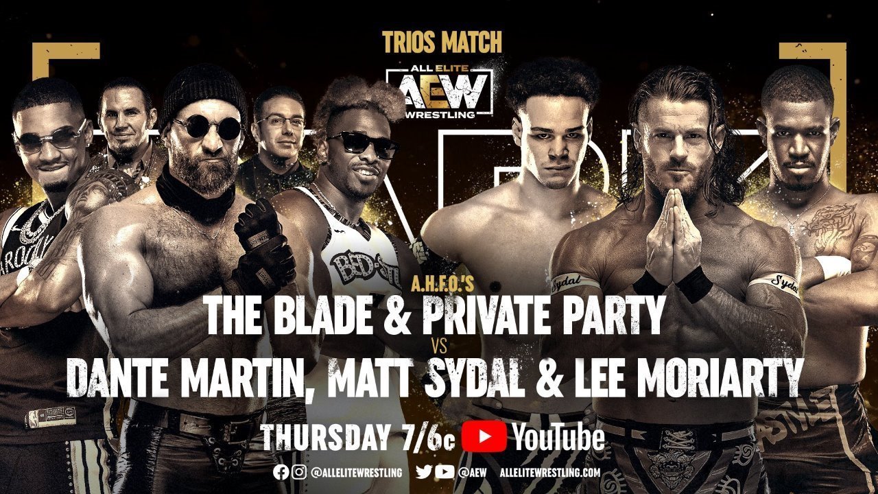 Dante Martin, Lee Moriarty & Matt Sydal vs. AHFO (Isiah Kassidy, Marq Quen & The Blade) (w/Jose The Assistant & Matt Hardy)