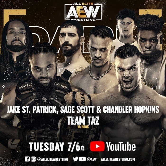 Chandler Hopkins, Jake St. Patrick & Sage Scott vs. Team Taz (Brian Cage, Powerhouse Hobbs & Ricky Starks) (w/Hook)
