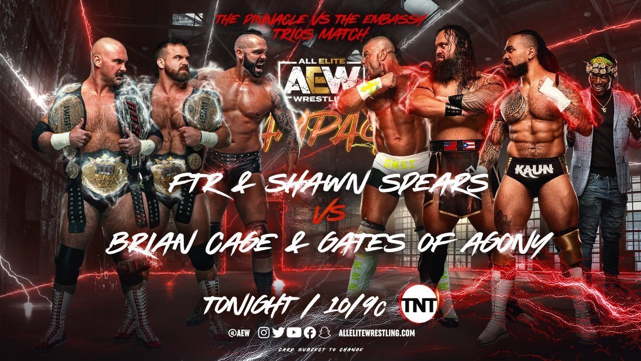 FTR (Cash Wheeler & Dax Harwood) & Shawn Spears vs. The Embassy (Bishop Kaun, Brian Cage & Toa Liona) (w/Prince Nana)