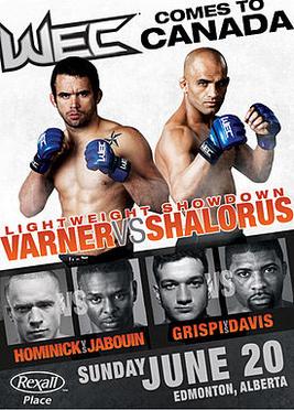 Description WEC 49: Varner vs. Shalorus was a mixed martial arts event held by World Extreme Cagefighting that took place on June 20, 2010 at Rexall Place in Edmonton, Alberta, Canada.