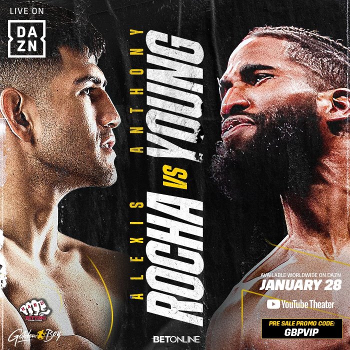 Description Golden Boy Boxing returns for its first show of 2023, live from Californias Youtube Theater. Headlining the bill is southpaw sensation Alexis Rocha (21-1), who tests himself against Ghana’s George Ashie (33-5-1).