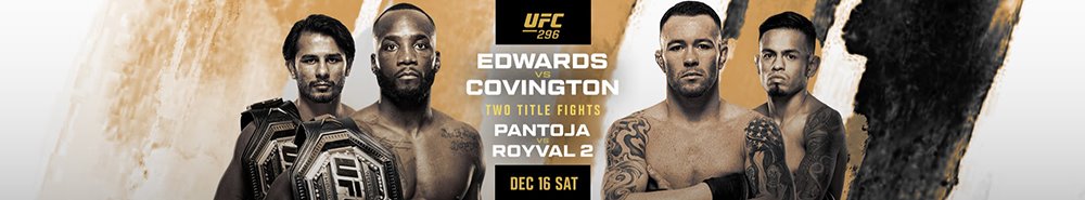 UFC 296: Edwards vs. Covington was a mixed martial arts event produced by the Ultimate Fighting Championship that took place on December 16, 2023, at the T-Mobile Arena in Paradise, Nevada, part of the Las Vegas Metropolitan Area, United States.