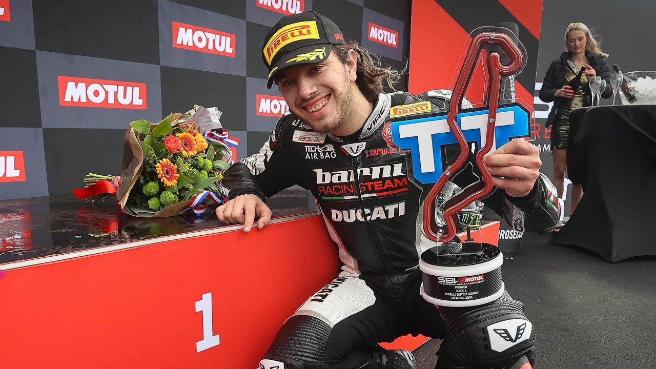 A tyre gamble and a fortunately timed red flag allowed Nicholas Spinelli (Barni Spark Racing Team) to claim a stunning debut win in the MOTUL FIM Superbike World Championship, while it was also the team’s first win in the WorldSBK class. After bursting into the lead and pulling out a 25-second lead on intermediate tyres before his rivals started closing him down but, with the red flags shown at the TT Circuit Assen, the Italian was able to take a debut win during the Pirelli Dutch Round.
