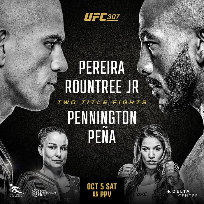 UFC 307: Pereira vs. Rountree Jr. is an upcoming mixed martial arts event produced by the Ultimate Fighting Championship that will take place on October 5, 2024, at the Delta Center in Salt Lake City, Utah, United States.