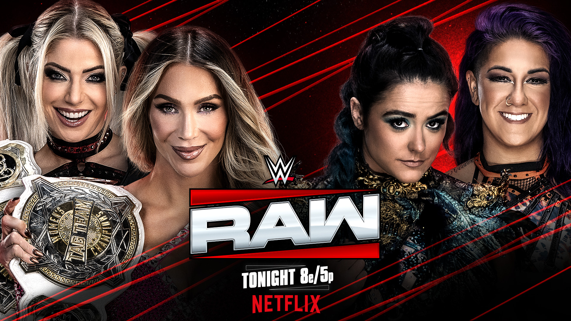 Alexa Bliss & Charlotte Flair (c) vs. Bayley & Lyra Valkyria