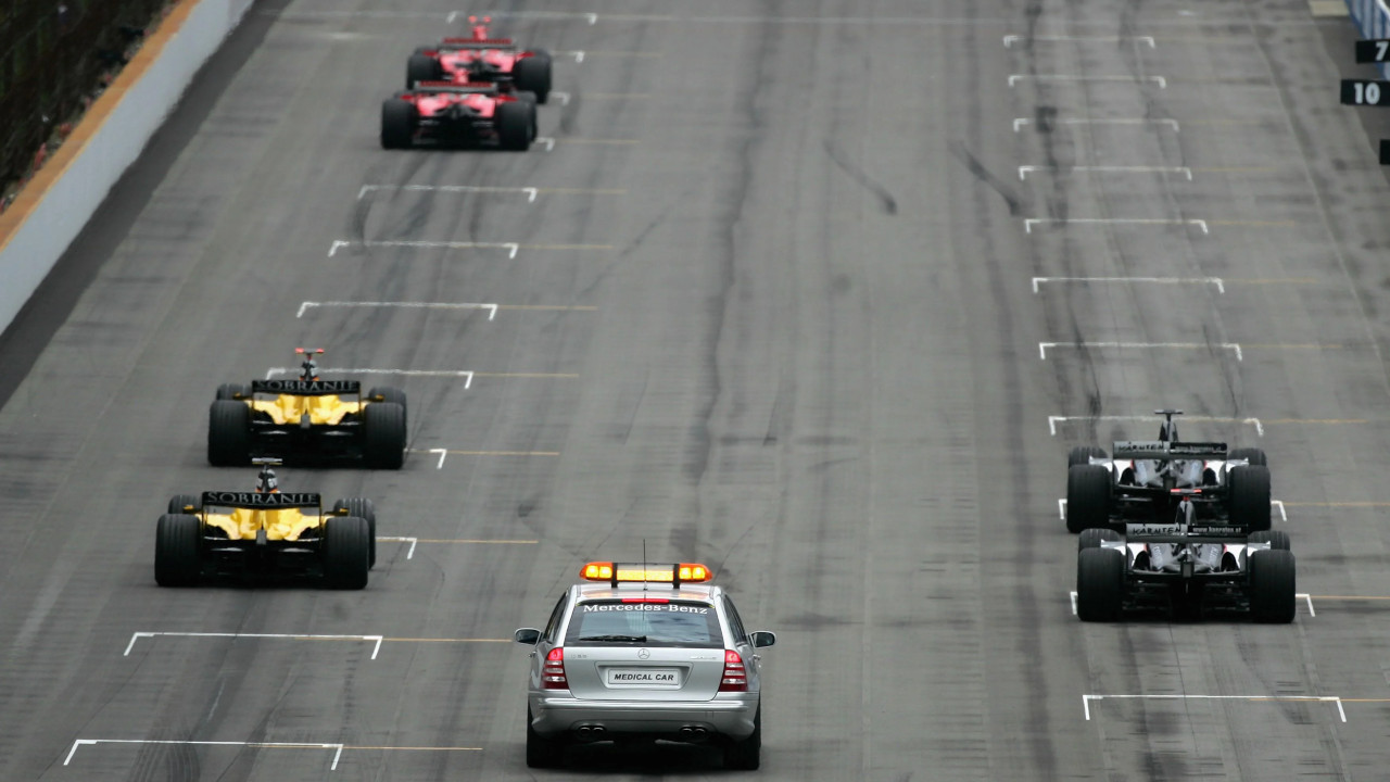 The 2005 United States Grand Prix (officially the 2005 Formula 1 United States Grand Prix) was a Formula One motor race held on June 19, 2005, at the Indianapolis Motor Speedway and was the ninth race of the 2005 Formula One World Championship. The event is one of the most infamous races in motorsport history. Out of the 20 cars that entered the race, only the six cars from the teams using Bridgestone tyres (Ferrari, Jordan, and Minardi) competed. The remaining fourteen entrants, all using Michelin tyres, completed the formation lap, but retired to the pit lane before the race started.