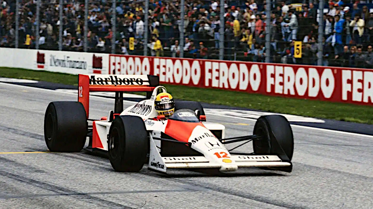 Description The 1988 San Marino Grand Prix was a Formula One motor race held at Imola on 1 May 1988. The 60-lap race was the second round of the 1988 Formula One season. Ayrton Senna scored his first victory for the McLaren team, with turbocharged Honda-powered cars sweeping the top three positions.
