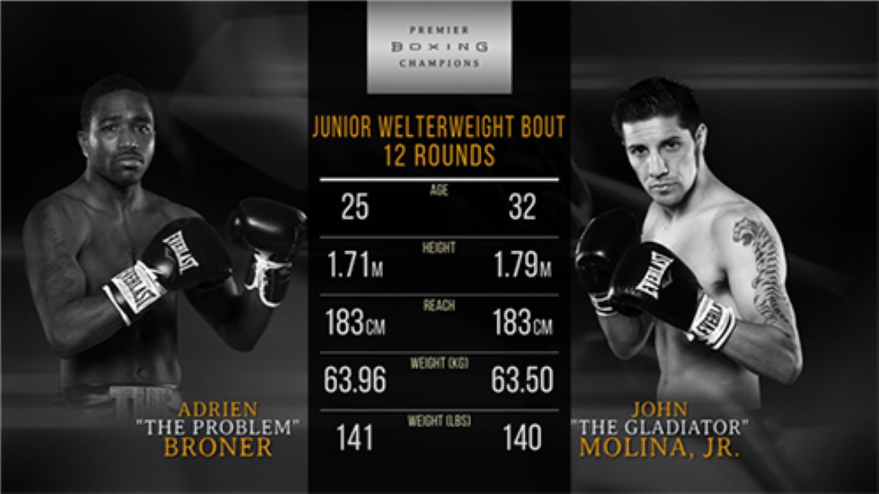 Description Broner fought his way to a decisive unanimous decision victory over a frustrated John Molina Jr. For Molina, it was his third loss in a row, while Broner notched his third consecutive victory after suffering his lone defeat against Marcos Maidana in December 2013.