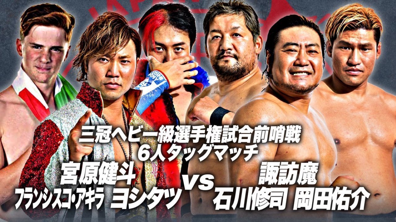 Yoshiken (Kento Miyahara & Yoshitatsu) & Akira Francesco defeat Violent Giants (Shuji Ishikawa & Suwama) & Yusuke Okada (16:55)