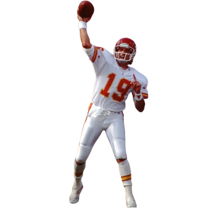 Joseph Clifford Montana Jr. (born June 11, 1956), nicknamed Joe Cool, The Comeback Kid, is a former American football quarterback who played in the National Football League (NFL) for 16 seasons, primarily with the San Francisco 49ers. He also briefly played for the Kansas City Chiefs. After winning a college national championship at Notre Dame, Montana started his NFL career in 1979 with San Francisco, where he played for the next 14 seasons. Traded before the 1993 season, he spent his final two years in the league with the Kansas City Chiefs. While a member of the 49ers, Montana started and won four Super Bowls and was the first player ever to have been named Super Bowl Most Valuable Player three times. He also holds Super Bowl career records for most passes without an interception (122 in 4 games) and the all-time highest quarterback rating of 127.8. Montana was elected to the Pro Football Hall of Fame in 2000, his first year of eligibility.