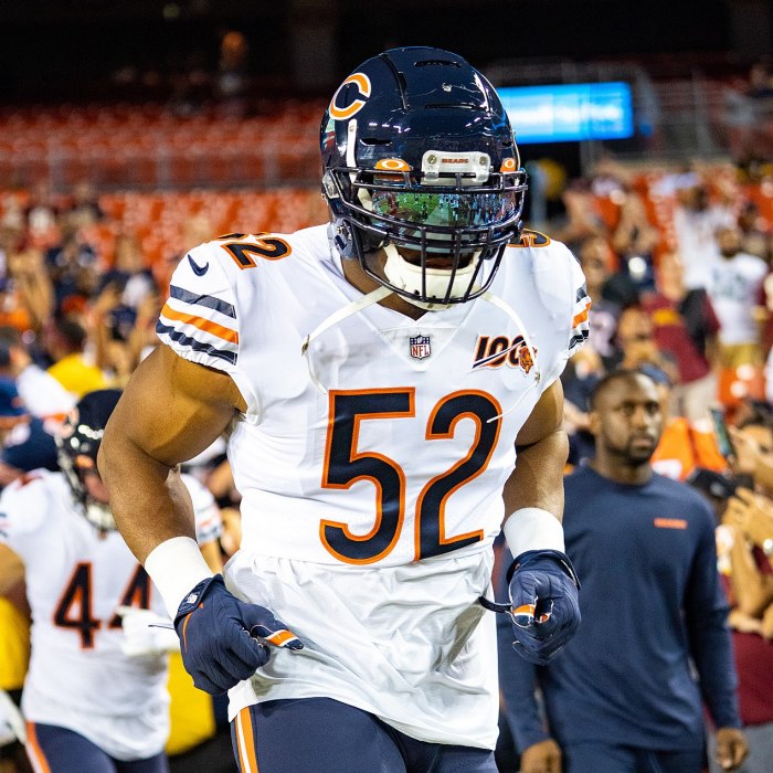 Khalil Delshon Mack (born February 22, 1991) is an American football outside linebacker for the Chicago Bears of the National Football League (NFL). He played college football at Buffalo, and was drafted by the Oakland Raiders fifth overall in the 2014 NFL Draft. Mack holds the all-time NCAA record for forced fumbles and is also tied for career tackles for loss in the NCAA. In 2015, he became just the second first-team All-Pro in NFL history to be selected by the Associated Press for two positions (defensive end and outside linebacker) in the same season, joining Lawrence Taylor, who did so in 1983. In September 2018, Mack was traded by Jon Gruden to the Bears for two first round draft picks and signed a six-year, $141 million extension, becoming the highest paid defensive player in NFL history. Mack is widely recognized as one of the most dominant defensive players currently playing in the NFL.