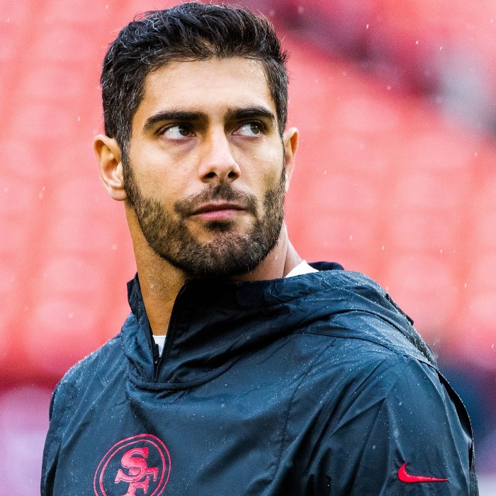 James Richard Garoppolo (born November 2, 1991) is an American football quarterback for the San Francisco 49ers of the National Football League (NFL). He played college football at Eastern Illinois and was drafted in the second round of the 2014 NFL Draft by the New England Patriots, with whom he won two Super Bowls as the backup to Tom Brady.
