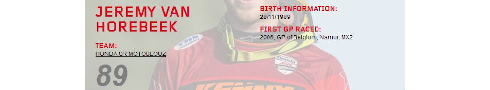 In 2018, Van Horebeek left the "Yamaha Factory Racing Team" team and had no prospect of a further team. However, at the beginning of 2019, he announced that he would start in the MXGP class from 2019 with the French Team SR Honda Motoblouz.