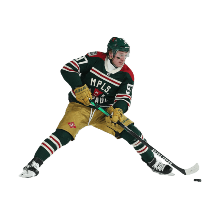 Kirill Olegovich Kaprizov (Russian: Кирилл Олегович Капризов; born 26 April 1997) is a Russian professional ice hockey left winger for the Minnesota Wild of the National Hockey League (NHL). Before joining the Wild, Kaprizov played for Metallurg Novokuznetsk, Salavat Yulaev Ufa and CSKA Moscow in the Kontinental Hockey League (KHL). Kaprizov won the Calder Memorial Trophy as NHL rookie of the year in 2021, becoming the first Wild player to win the award. He is also known to fans by the nickname “Dolla Dolla Bill” and "Kirill the Thrill".