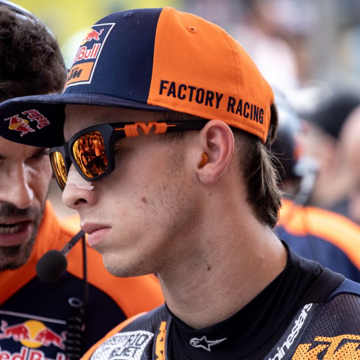 Pedro Acosta Sánchez (born 25 May 2004) is a Spanish Grand Prix motorcycle racer, competing in MotoGP for the Red Bull KTM Factory Racing team. Acosta won the second Moto3 race he competed in, the 2021 Doha motorcycle Grand Prix, after starting from the pitlane. In the same season, he won the 2021 Moto3 World Championship to become the first rookie champion since Loris Capirossi in 1990, and the second youngest ever champion, just one day older than Capirossi was at the time of winning. In 2023, Acosta won the Moto2 world championship with 2 races to go. Acosta is also a champion of the Red Bull MotoGP Rookies Cup, having won the title in 2020.