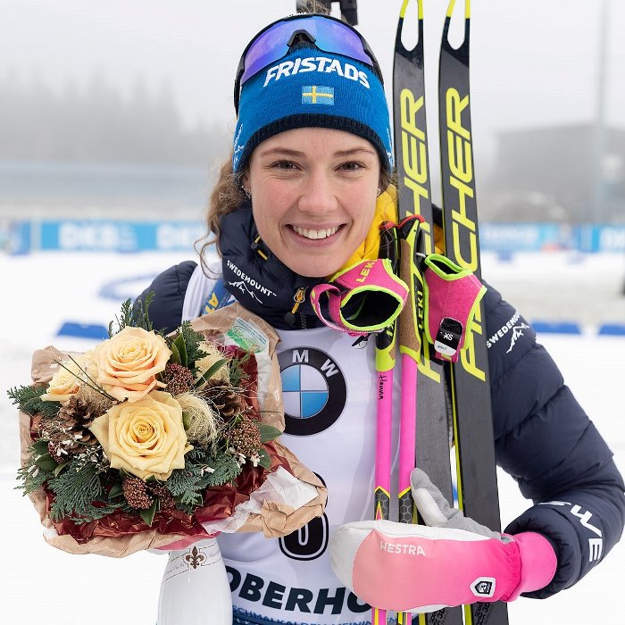 In 2017 she won the IBU Female Rookie of the Year Award for her World Cup debut season, with the male counterpart being awarded to her fellow Swede Sebastian Samuelsson. At the Pyeongchang 2018 Winter Olympics she won a surprising gold in the Individual, after four clean shootings. It was both the first victory and podium of her career, with her previous best being a fifth place in the world cup. She also claimed silver in the Relay, finished seventh in sprint, and fifth in both the mass start and the pursuit. Öberg repeated her Olympic success at the 2019 Biathlon World Championships on home snow in Östersund, where she again won the individual with a perfect shoot, having previously finished fourth in the sprint and fifth in the pursuit. She became the first female biathlete to win the individual World Championship title the year after taking the Olympic individual gold.