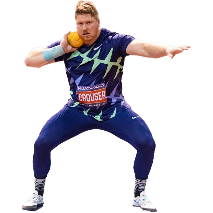 Crouser achieved his first Olympic gold medal at the 2016 Rio de Janeiro Olympics with a throw of 22.52 m and retained his title at the 2020 Tokyo Olympics, setting an Olympic record of 23.30 m. At the 2019 World Championships in Doha, he secured a silver medal. Crouser then went on to win gold at both the 2022 World Championships in Eugene and the 2023 World Championships in Budapest. His throw of 23.51 m in Budapest set a record for the farthest throw ever at a World Championships.
