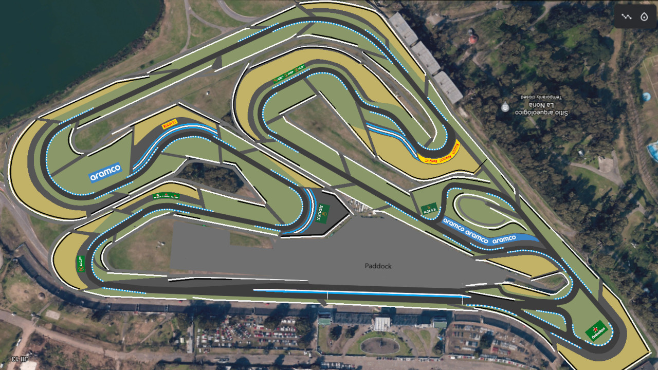 The circuit was originally constructed on swampland in Villa Riachuelo, the southernmost barrio of Buenos Aires, and is situated on flat lands surrounded by large grandstands, giving most spectators an excellent view area of the whole circuit. The circuit is notable for the large number of alternative layouts to accommodate different forms of racing, with some races run without the twisty infield section, reducing lap times significantly.