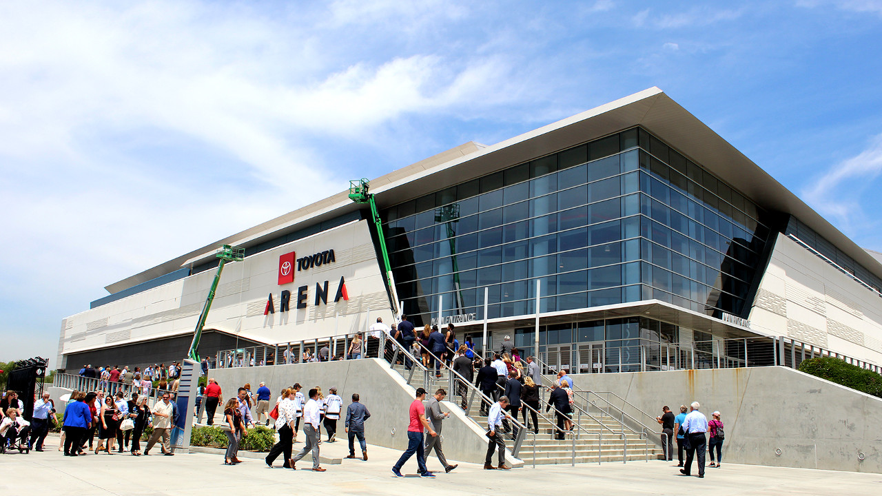 Toyota Arena (formerly known as Citizens Business Bank Arena) is a multi-purpose arena in Ontario, California. It hosts local sporting events and concerts. Construction officially began on March 7, 2007, and the arena was opened on October 18, 2008. It is suitable for indoor events, including basketball, ice hockey, ice shows, boxing, graduation ceremonies and concerts. The arena's basketball capacity is 10,832. It also seats 9,736 for hockey (9,491 for Ontario Reign games) and its full capacity is 11,089. The 225,000-square-foot (20,900 m2) venue also has 36 luxury suites on two levels. It is the biggest and most modern arena within the Inland Empire region of California.